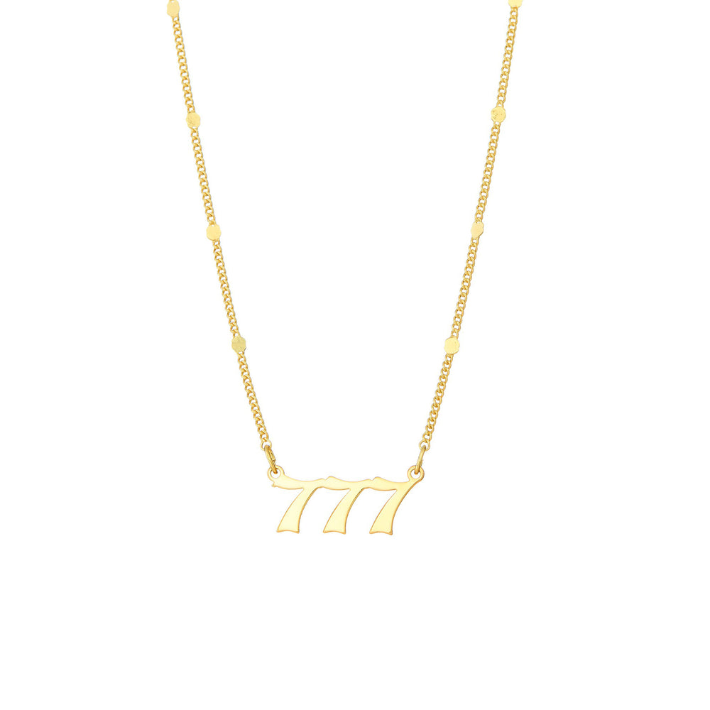 This stylish 777 Angel Numbers Necklace is crafted from stainless steel and is available in a striking gold finish. Featuring a stunning pendant necklace with adjustable length of 16.75+3", it is the perfect accent to your daily look. Capture the divine energy of the 777 angel number with this beautiful jewelry accessory.