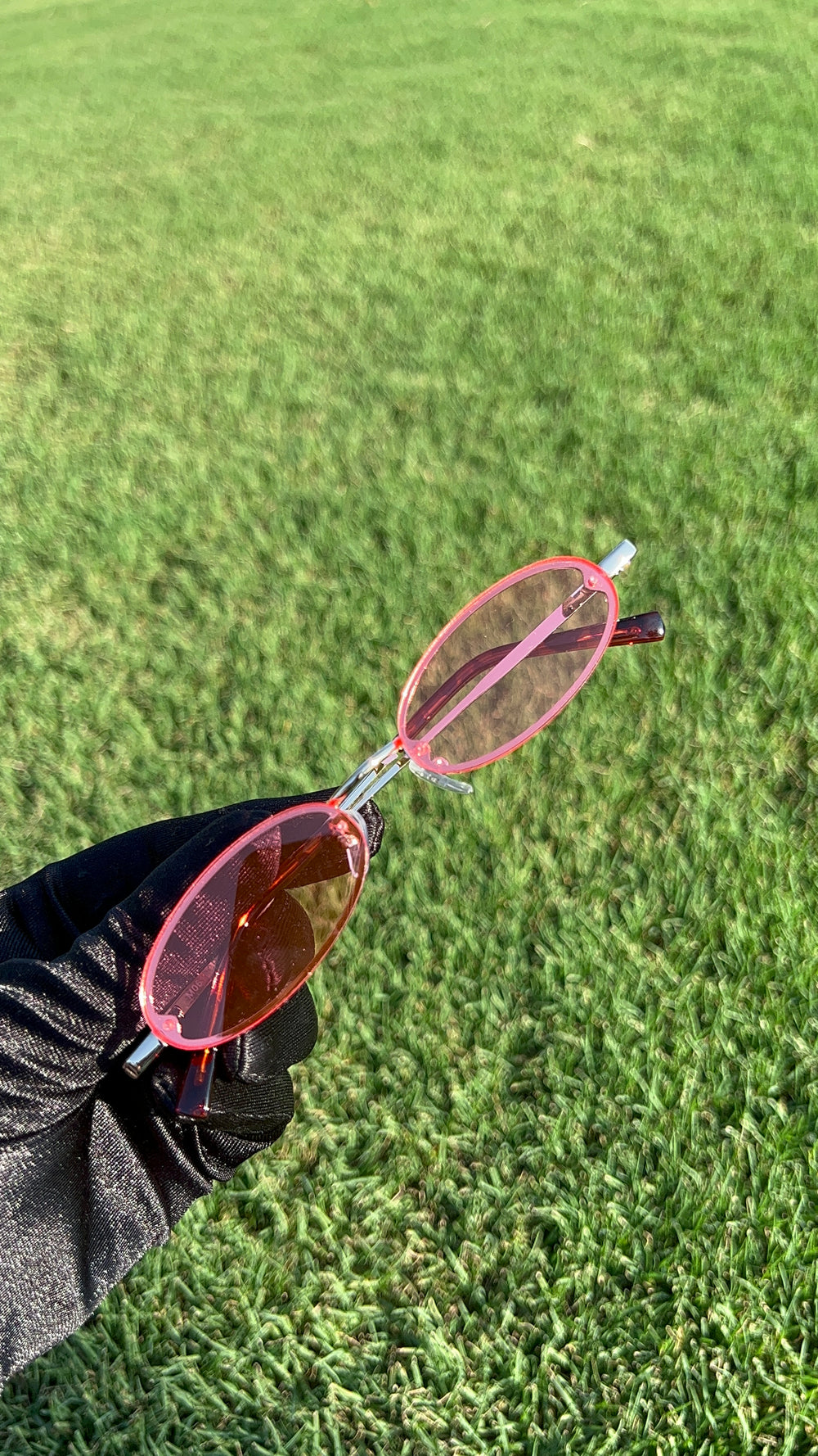 Rimless frames and brilliant color tinted lenses for a fun and vibrant effect. Slim metal frames make them lightweight to wear, while providing an adjustable English style nose piece add comfort during wear. Great for adding a throwback touch to your look. Made with a metal based frame, metal hinges, and 100% UV protected lenses.